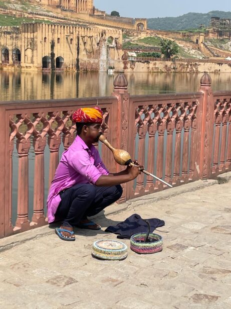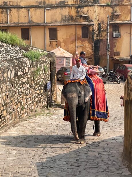 Růžové město Jaipur a opět zastávka na jeden den. Zde jsme navštívily pevnost Amber Fort, jejíž návštěva byla okořeněna jízdou na slonech, respektive sloni nás do pevnosti dovezli. Respekt z takto majestátního zvířete mám velký, ačkoli vím, že se jedná o mírumilovná zvířata, ale jízdu už bych neopakovala. Sedlo pro dva, kde sedíte bokem ke směru jízdy, se houpalo tak, že jsem se chvíli modlila, zda je vůbec dobře připevněno, a celou cestu jsem zpevňovala všechny vnitřní svaly (i ty, které nemám), abychom se co nejméně nakláněly a tedy nevypadly. Požitek? Žádný.