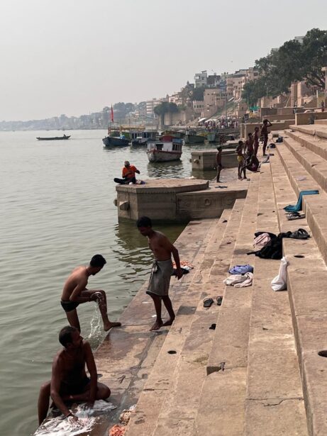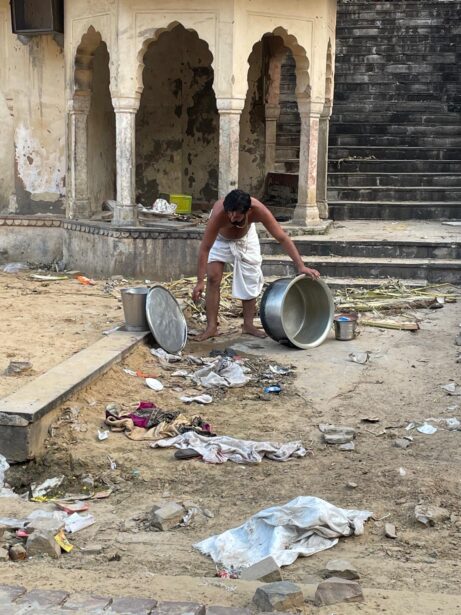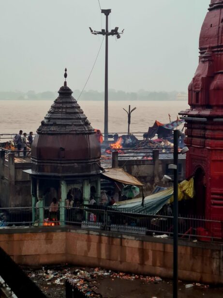 Varanásí k nám bylo milostivé, neboť druhý den jsme se probudily do totálního deště. A proč jsme to ocenily? Protože na programu byla návštěva pohřebních rituálů a tak déšť smyl hodně toho, co bychom opravdu nechtěly vidět a hlavně cítit. I tak byla přítomnost smrti cítit na každém kroku. Když toto člověk zažije a vidí, jak přenáší mrtvoly na nosítkách, mažou je ghíčkem a dávají na hranici a obkládají dřevem, uvědomí si, že je třeba žít tady a teď. Věděli jste třeba, že cca po 1,5 hodině na hranici je třeba dřevěným kyjem udeřit do lebky, aby mohl duch člověka vystoupat do výšin? Pro nás Evropany je sasmozřejmě důvodem to, aby hlava neexplodovala do okolí.
