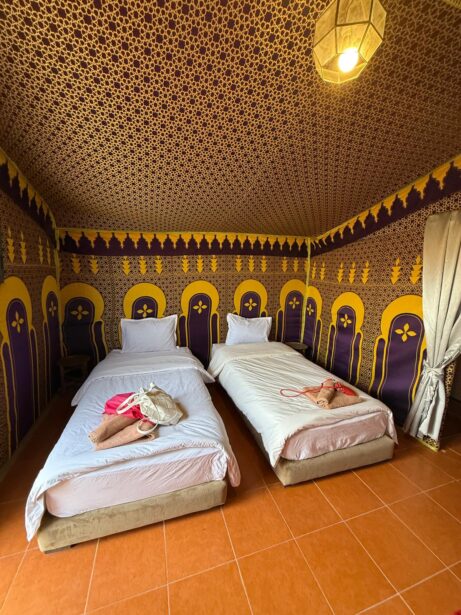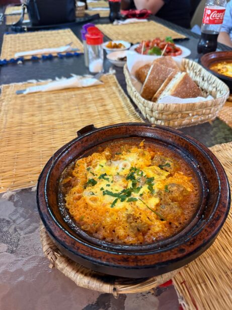 - Jídlo: obědy jsme řešily vždy v místních restauracích. Vepřové v muslimské zemi samozřejmě nečekejte, ale zeleninové polévky, masové i kuskusové tažíny, pro otrlejší je zde možnost ochutnat i velbloudí maso.