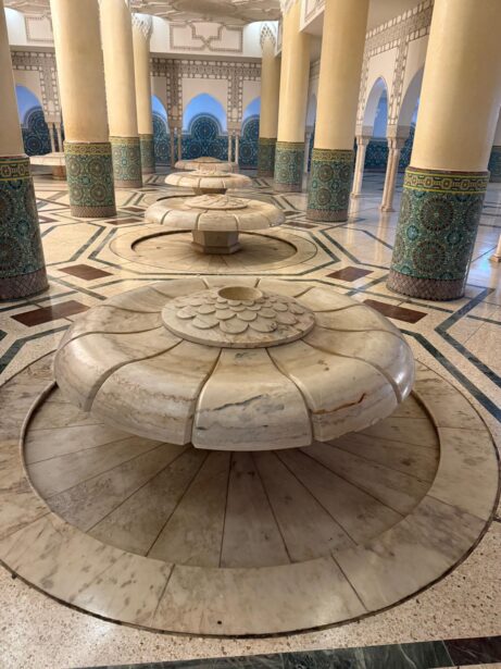 Podvečer v Casablance jsme pak strávily v mešitě Hasanna II., největší v severní Africe (údajně 5. nejvetší na světě) a jediné přístupné i pro bezvěrce jako jsme my. Je to náboženská stavba jako třeba Chrám sv. Víta, ale že má ve svém přízemí obrovské lázně rozlohou stejně velké jako půdorys mešity, kam se věřící muslimové chodí před modlitbou mýt? Tak to by člověk opravdu nečekal.