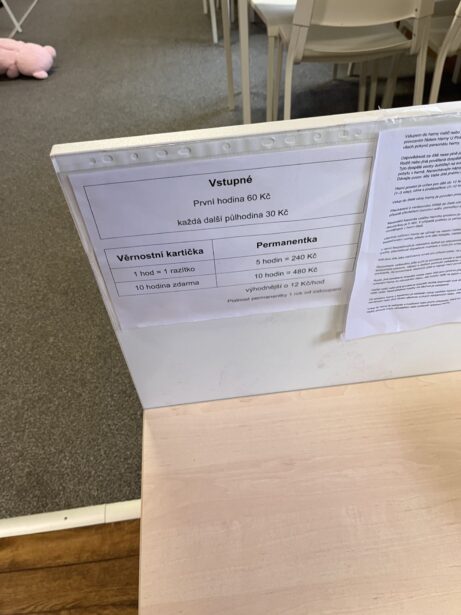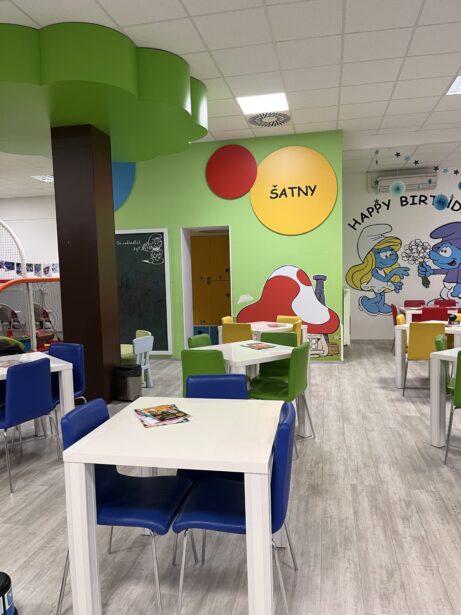 Po poledním odpočinku jsme zamířili do Šmoulíkova Prostějov – všimli jsme si názvu herny už při naší cestě do Vyškova a říkali jsme si, že to bude fajn zastávka. Hernička se otevírala až ve 14:00, takže chvíli bylo příjemně prázdno a mohli jsme si užít klidné hraní.