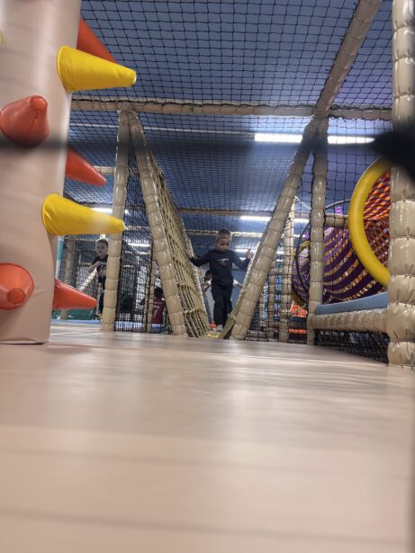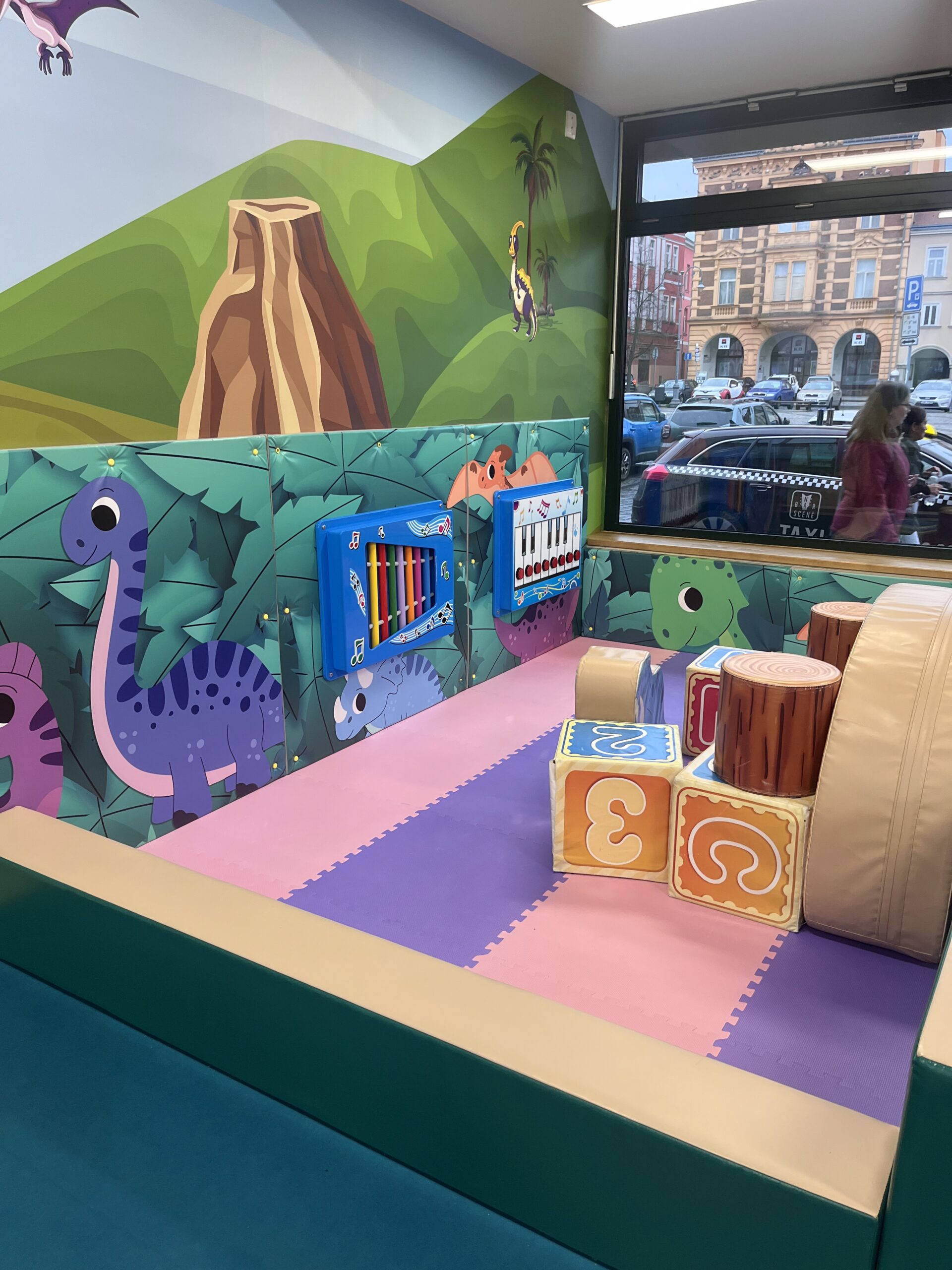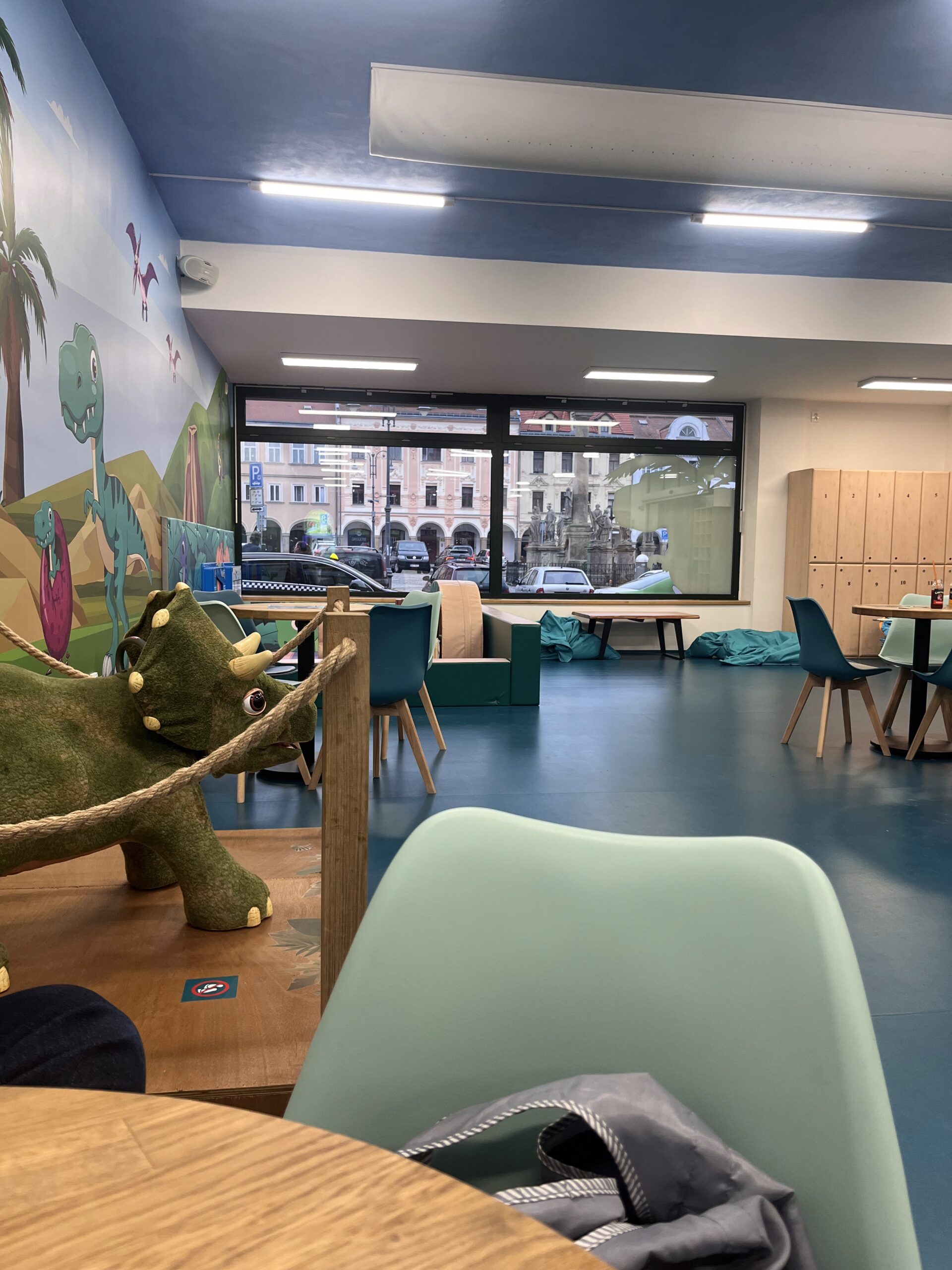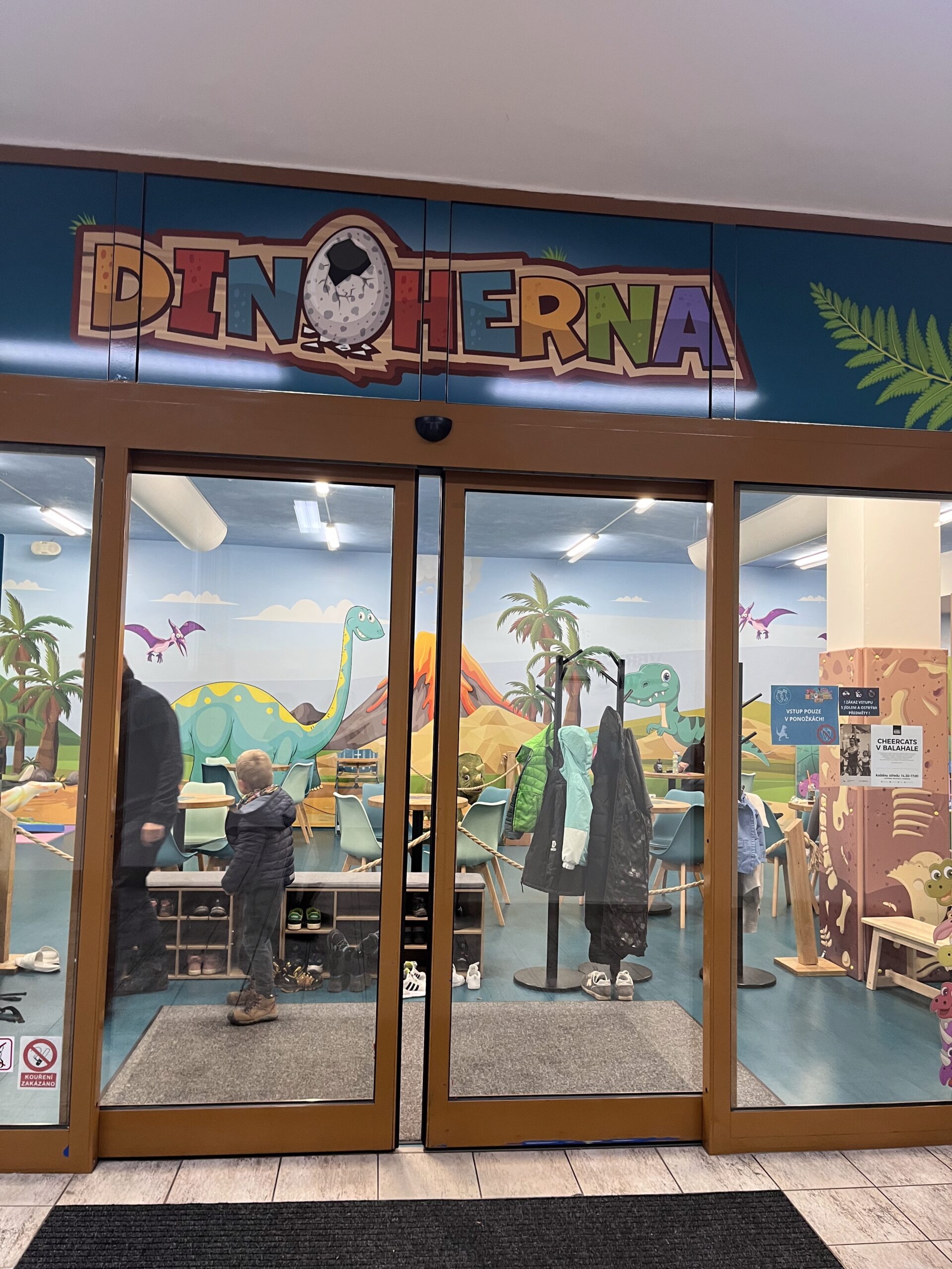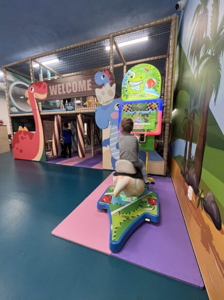 Byli jsme tu v neděli odpoledne a díky tomu, že bylo minimum dětí, měl Tobi prostorný herní prostor — ideální pro řádění. Herna jak už v názvu zaznělo je plná krasných barevných dinosaurů, takže tobi nadšený ještě více.