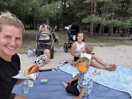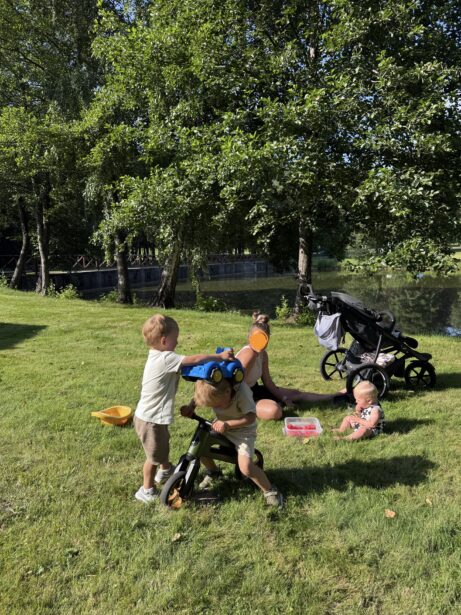 Než jsme úplně dorazily k autu, udělaly jsme si malou pauzu v místní restauraci. Káva a limonáda pro mámy, svačina pro děti a posezení u rybníku, kde jsme si vychutnaly klid odpoledne. Pak už jen sbalit poslední věci a hurá domů.