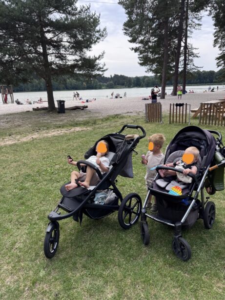 Pohodový výlet k vodě - dvě mámy, tři děti, dva kočárky a jedno odrážedlo.
