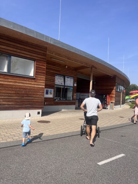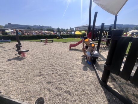 Oběd jsme si dali přímo v areálu, a po jídle si Tobi dopřál pořádný šlofík v kočárku ve stínu pod stromem, zatímco my jsme si užívali chvilku klidu.