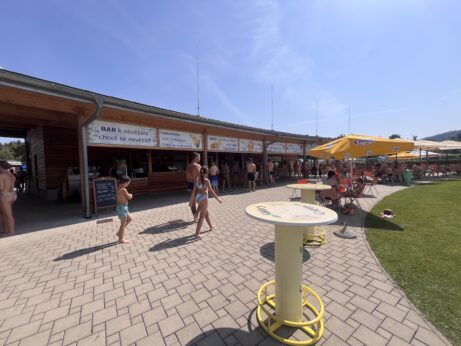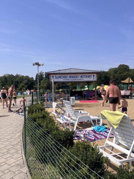- Půjčovna vybavení: lehátka, slunečníky, sedací vaky, sportovní vybavení (míče, minigolf, motokáry), pomůcky do vody pro děti